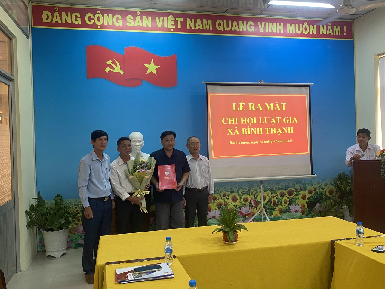 Tại buổi lễ Đại diện Hội luật gia Huyện đã công bố Quyết định thành lập Hội luật gia xã Bình Thạnh với 11 luật gia và chỉ định ông Huỳnh Tuấn Hiệp làm Chi hội trưởng luật gia xã Bình Thạnh, ông Cao Phi Công làm Chi hội phó luật gia xã Bình Thạnh.